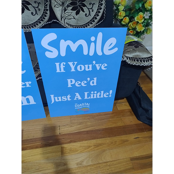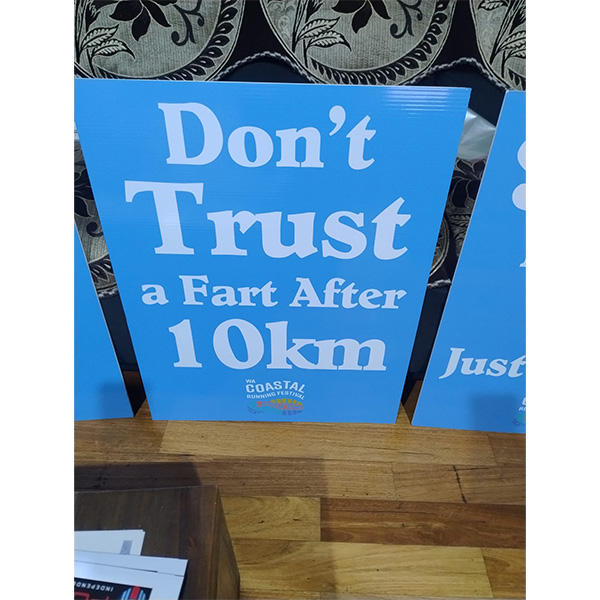 Made of 5mm thick PVC Corflute Material. Printed and Overlaminated. Available in both single and double side printing. Available in multiple sizes.